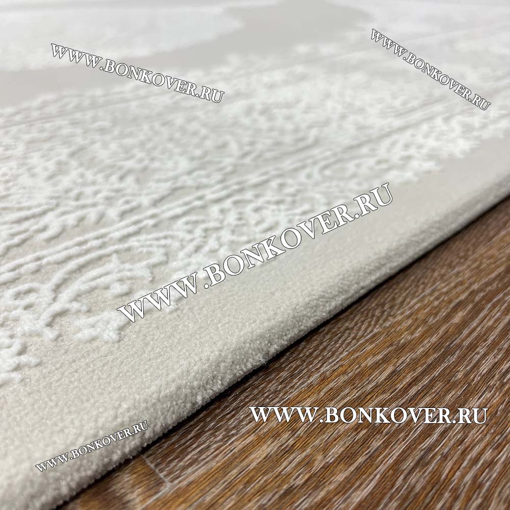 Ковер Для Гостиной Белый с Бежевым Дизайн 32 станет привлекательным дополнением интерьера, оформленного в современном или классическом стиле. Мягкое, но прочное, ковровое изделие обеспечивает тепло- и шумоизоляцию, отличается длительным сроком эксплуатации, пожаробезопасностью, экологичностью и высокой износостойкостью, является отличной преградой от повышенной влажности в помещении и утеплителем для холодного пола. Благодаря качеству материалов, ковер не деформируется, сохраняет первоначальный вид под тяжестью предметов мебели. За его поверхностью легко ухаживать.